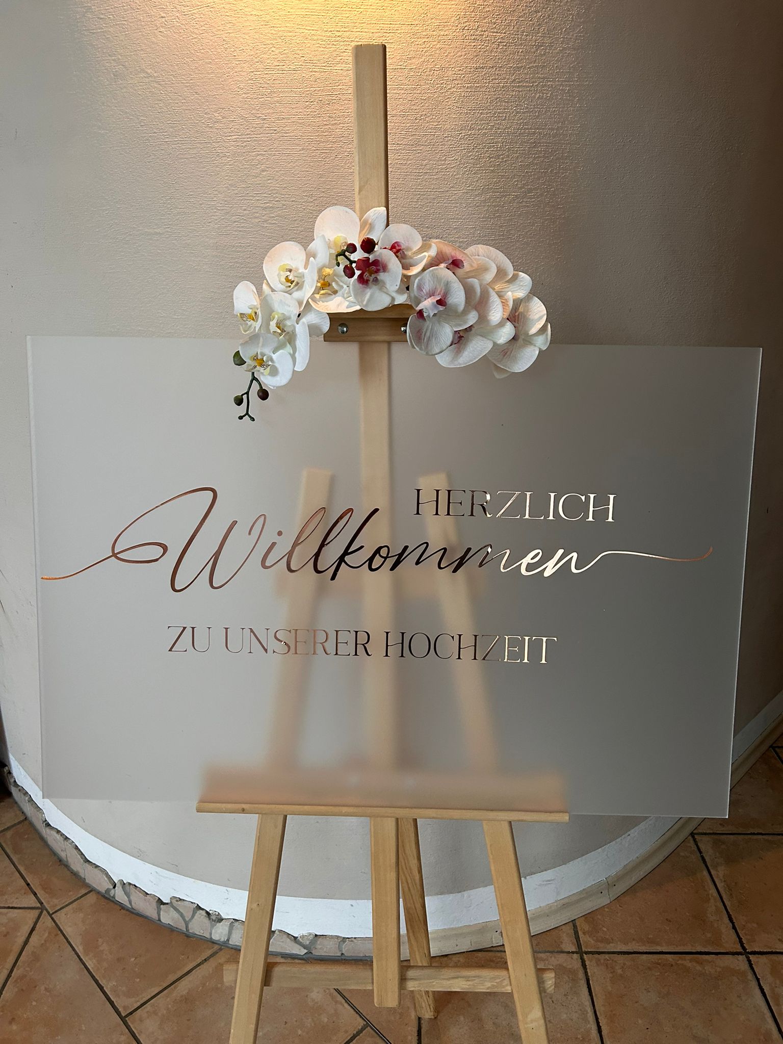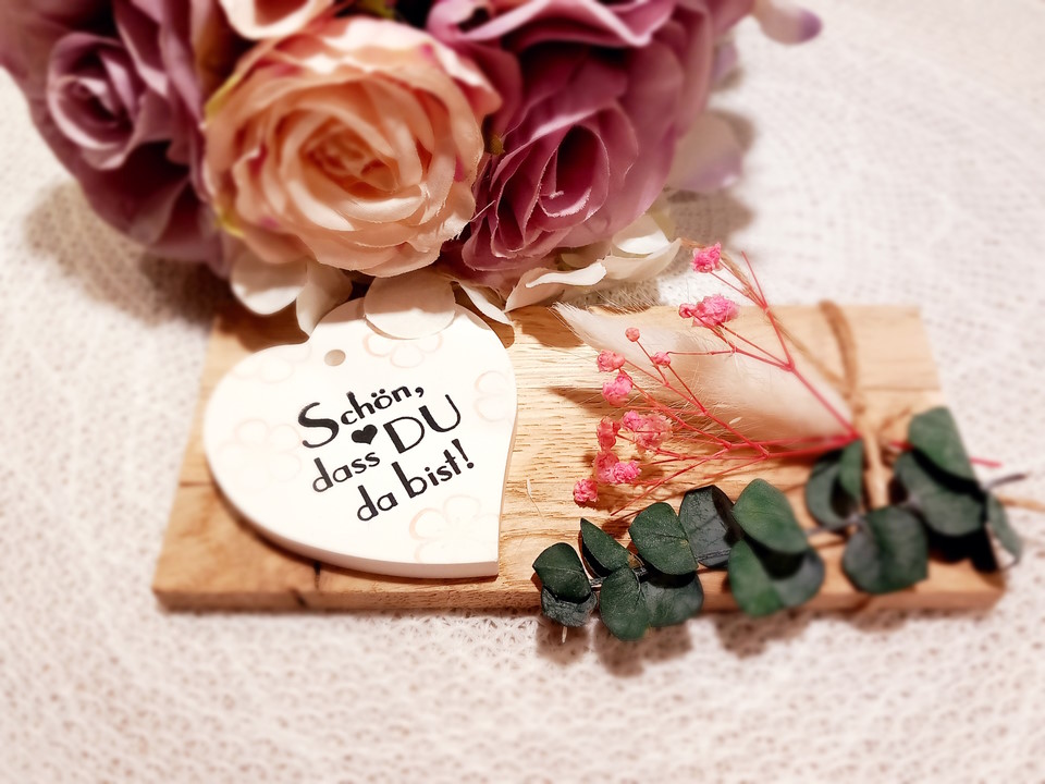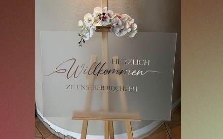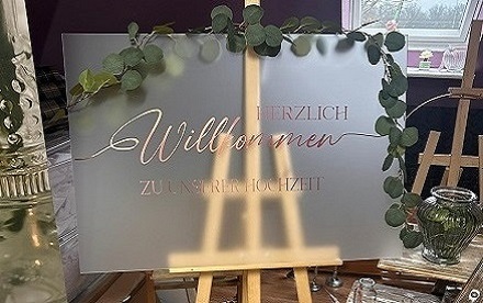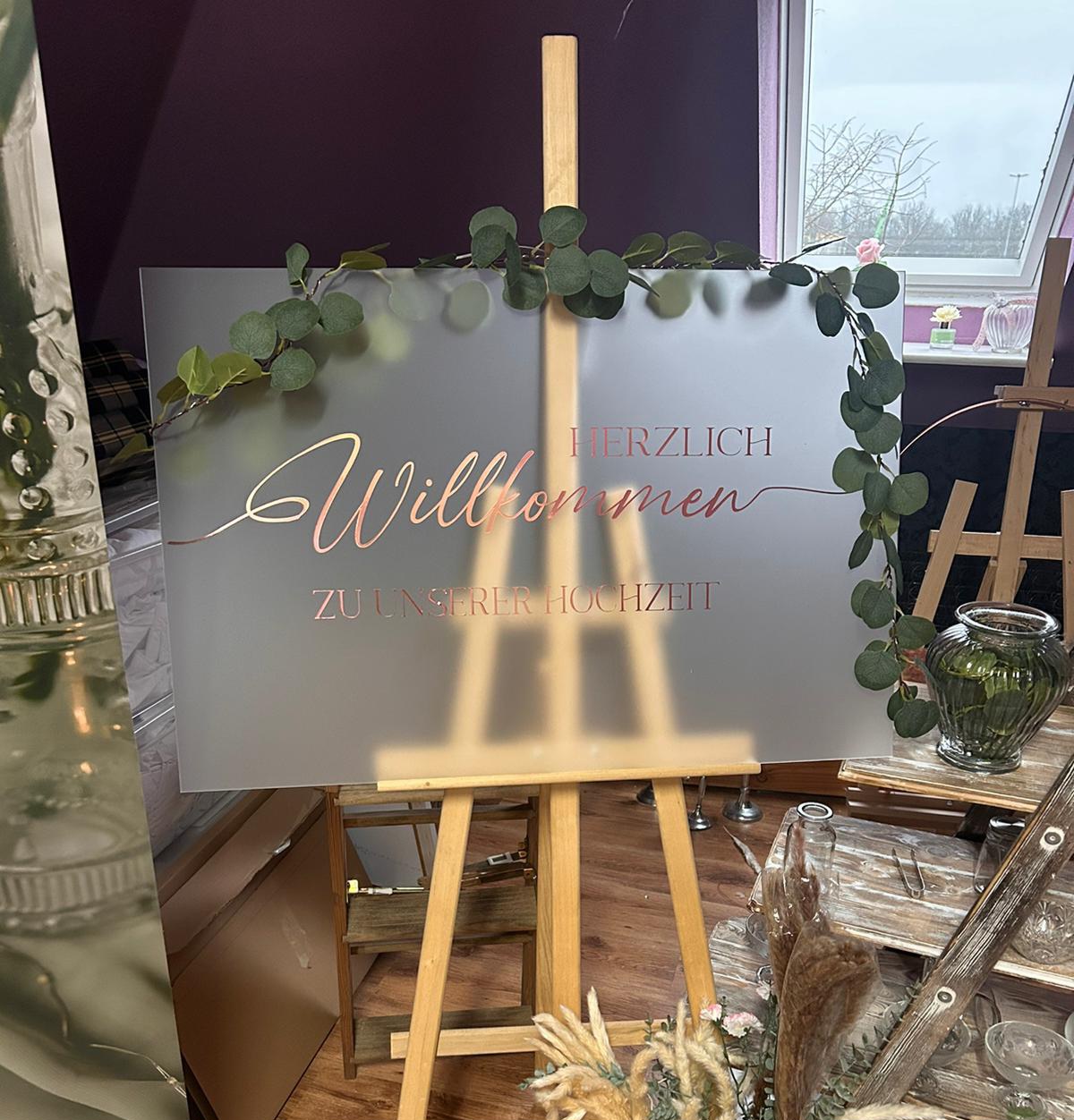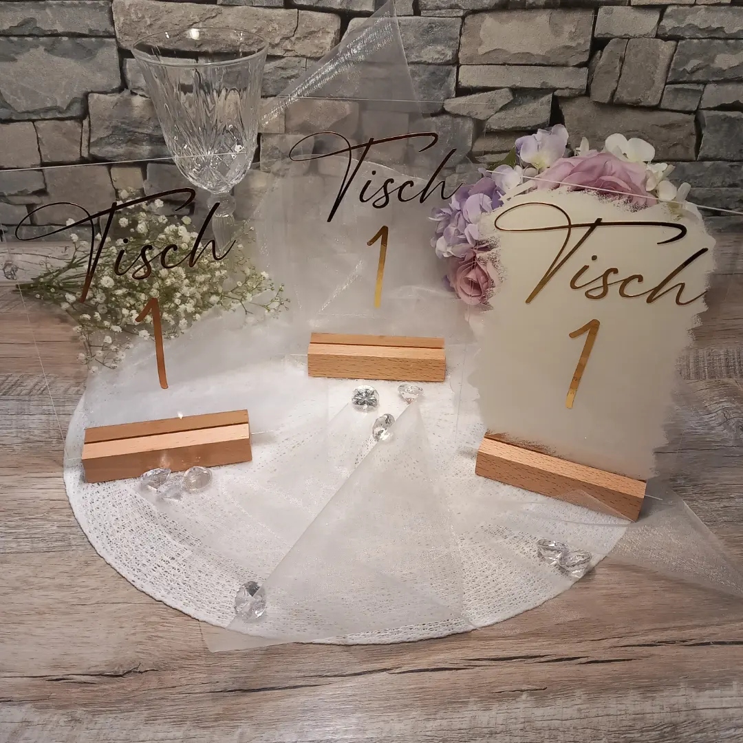 unter anderem kleine Dekorationsartikel, Tischnummern, Hochzeits- und Willkommensschilder für besondere Anlässe wie Hochzeiten,